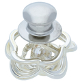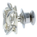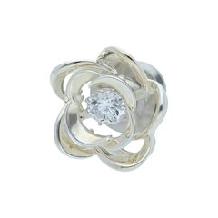 フラワーモチーフをシルバー素材で表現し、ゆらゆら揺れるクロスフォーカットをしたガラスを施したピンズです。